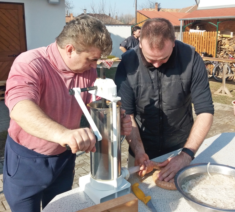 Idei hagyományos disznótoros napunk időpontjának kiválasztásánál nagy segítséget kaptunk az „időjárás felelőstől”, mert igazi napsütéses tavaszváró napon kísérhettük utolsó útjára a közel kétszáz kilós „malackánkat” a hurka-kolbász, disznósajt és tepertő készítésen át egészen az ünnepi vacsoraestünk végeztéig. (Igaz, tovább is, mert a másnapi takarítási "utóvédharcokról" sem kell ilyenkor elfelejtkeznünk!)