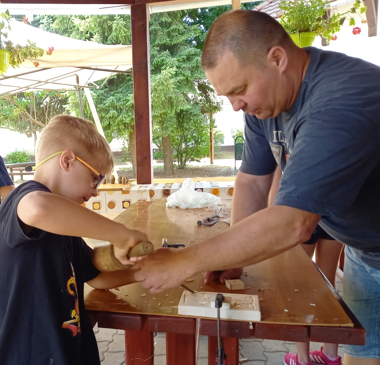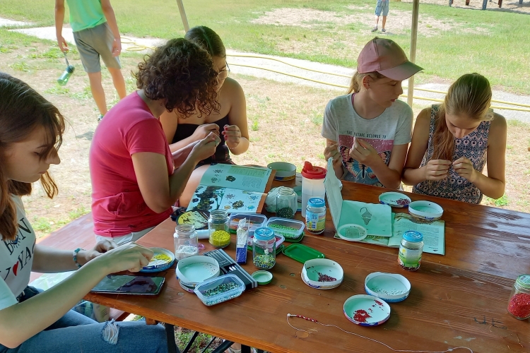 Ebben az esztendóben is változatos programokkal vártuk a táborozó gyerekeket. A legfontosabb elemek továbbra is a kézműves foglalkozások voltak. Székelyföldről érkezett mesterek tanították táborozóinkat a fafaragás, kerámiakészítés, gyöngyfűzés, nemezelés és a bútorfestés alapfogásaira.