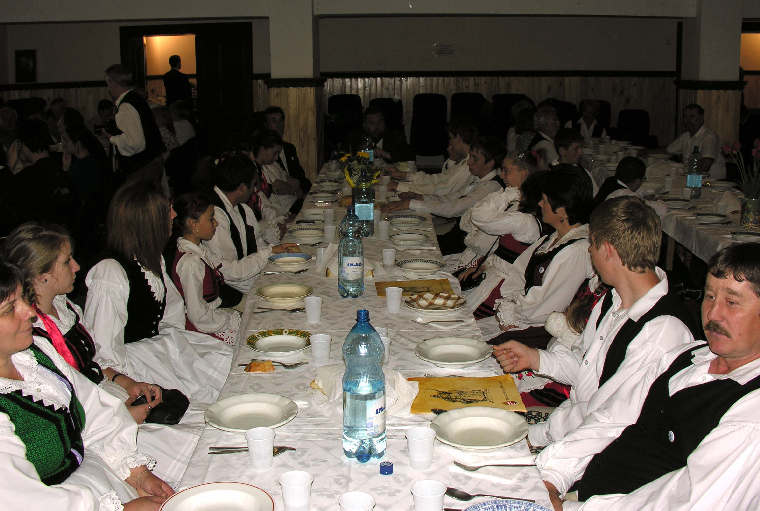 Ami a színpadi program után következett, az bizonyára emlékeinkben a Szentegyházán töltött felejthetetlen órák sorát fogja gazdagítani. Ugyanis a Múzeum Szálló éttermében közös nótázásra gyűltünk össze. Sokunk számára volt szívet-lelket melengető érzés együtt énekelni- és szép muzsikát hallgatni a „filisek” legszebb hangú gyerekeinek és Haáz Sándor tanár úr közreműködésével.