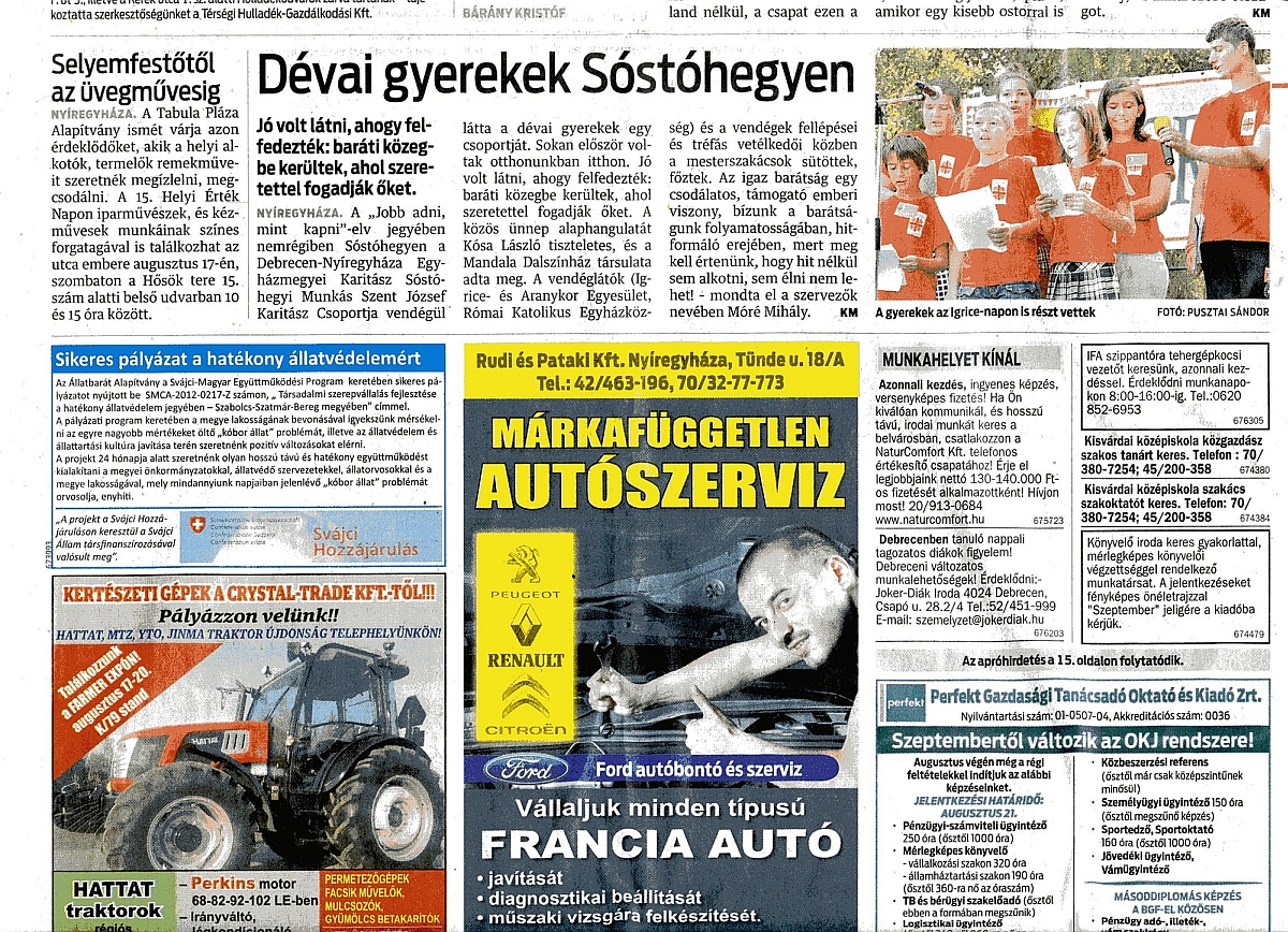 Híradás a Kelet-Magyarország c. napilapban (2013.augusztus 17.)