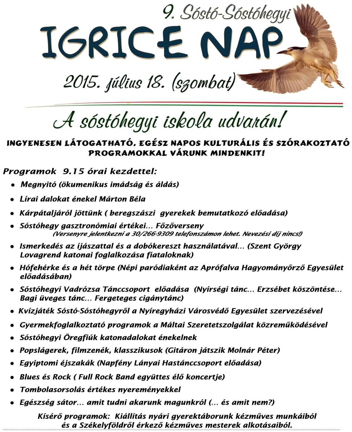 Kilencedik alkalommal rendezzük a Sóstó-Sóstóhegyi Igrice Napot, melyre szeretettel hívunk minden érdeklődőt !