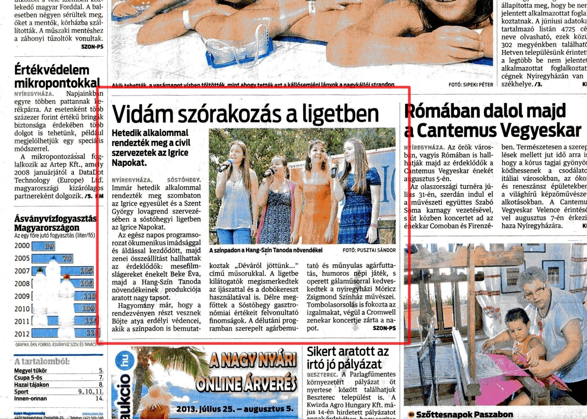 Rendezvényünkről a "Kelet-Magyarország" megyei napilapban (2013.július 29.)