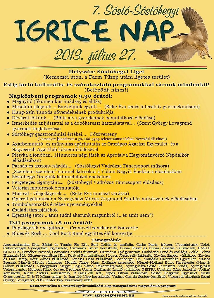 A programok megvalósításában résztvevők munkáját és az Igrice Napot támogató adományokat ezúton is köszönjük!