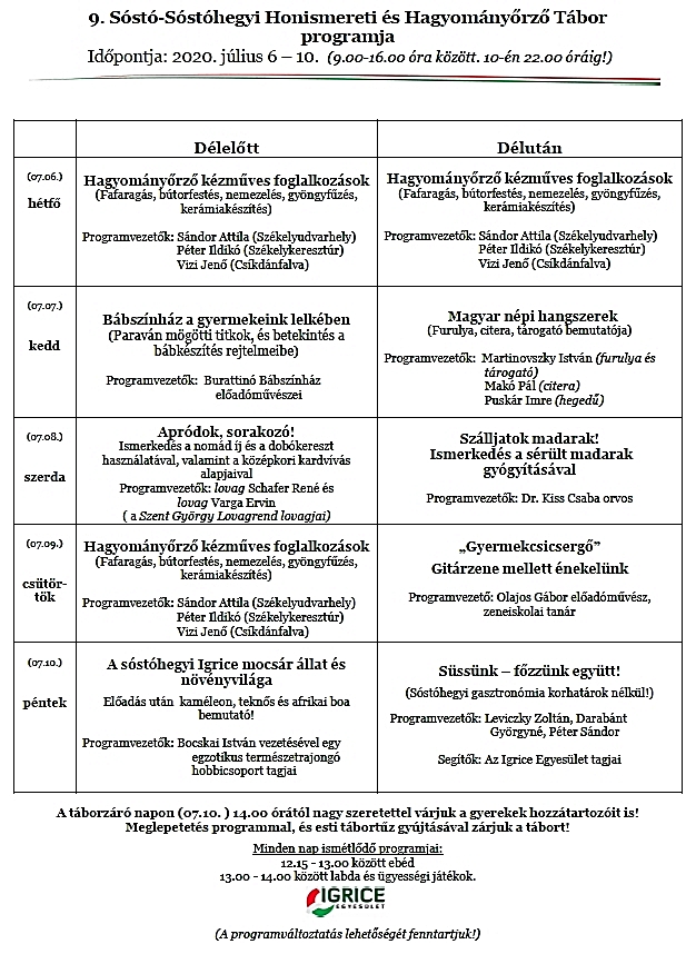 Ezúton tesszük közhírré a táborunk részletes programtervét: