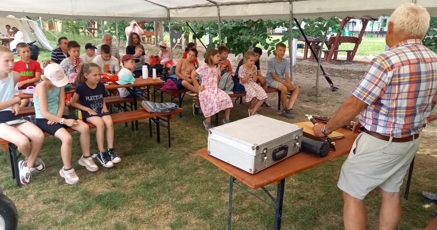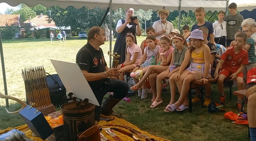 Nagyon kedves vendégünk volt Mónus József (a farkas) íjász táv és a harci céllövés többszörös világbajnoka, valamint a kedves felesége Anna Mária asszony, aki egy tartalmas honismereti előadás után tarsolylemezkészítő foglalkozást is vezetett.