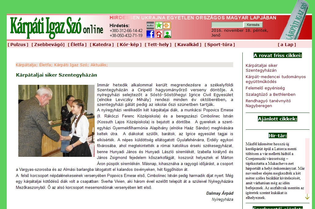 ►Rólunk írták a Kárpáti Igaz Szó online újságban (2016. november 18.)
