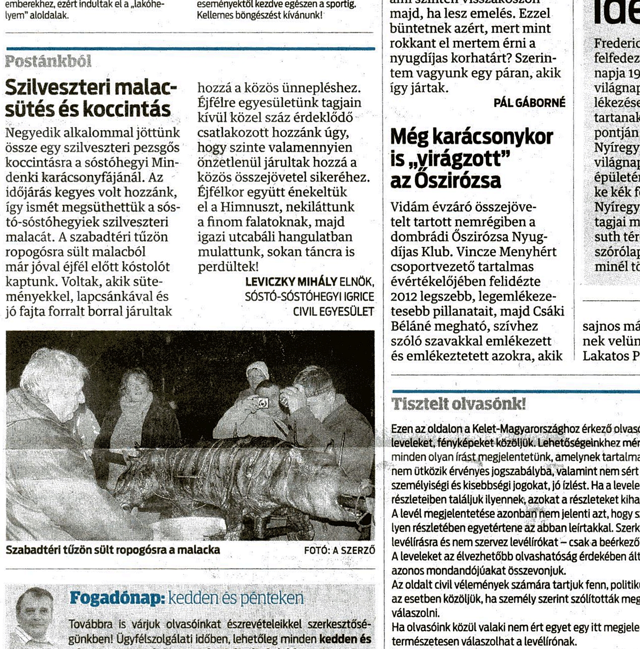Negyedik alkalommal jöhettünk össze szilveszteri pezsgős koccintásra a sóstóhegyi "Mindenki Karácsonyfájánál". Az időjárás kegyes volt hozzánk, így ismét megsüthettük a Sóstó-Sóstóhegyiek szilveszteri malacát.